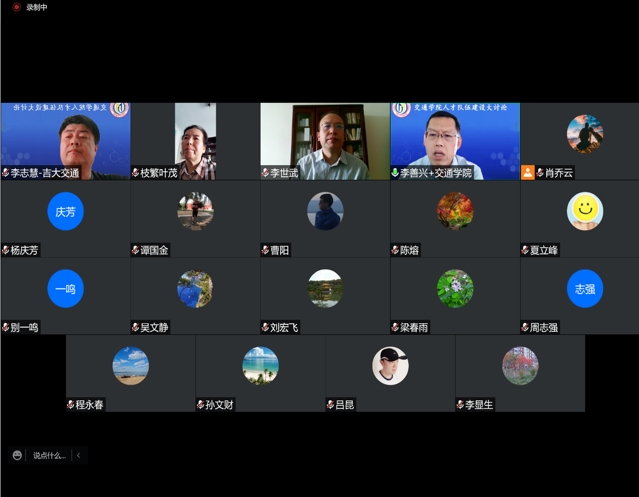 召开人才队伍建设大讨论工作会议。学术委员会主任、学位委员会主任、教学委员会主任、学院领导班子成员、各系主任与支部书记以及部分教师代表参加,座谈会由院长助理李志慧教授主持。