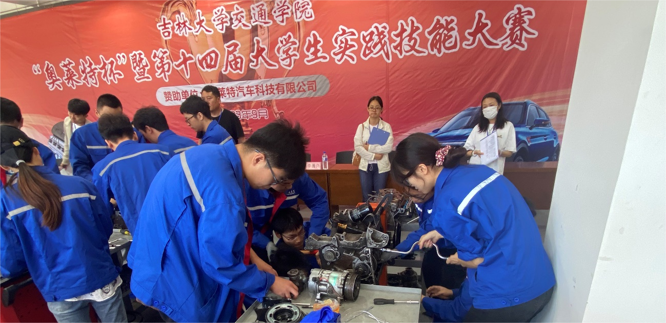 参加2023年“奥莱特杯”发动机拆装大赛的学生来自21级交通运输(汽车运用工程)专业、汽车服务工程专业的4个班级。大赛共有8个小组参加,分为发动机总成拆装比赛和汽车结构视频微课制作比赛两个参赛类别。每个参赛小组由6-8名队员组成。来自av国产