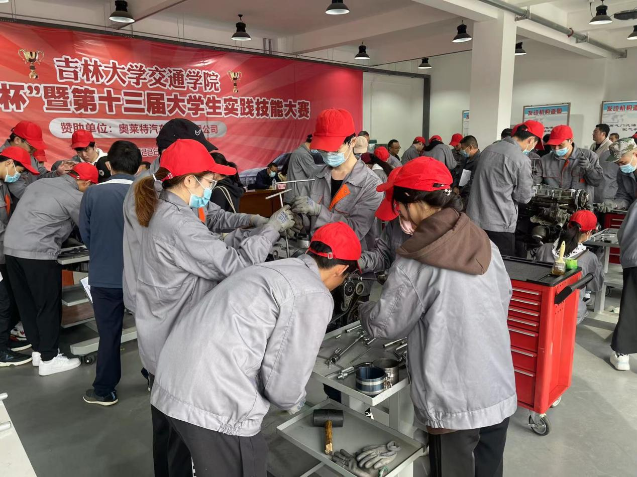 在发动机拆装实训室举办了“奥莱特杯”暨第十三届大学生实践技能大赛。