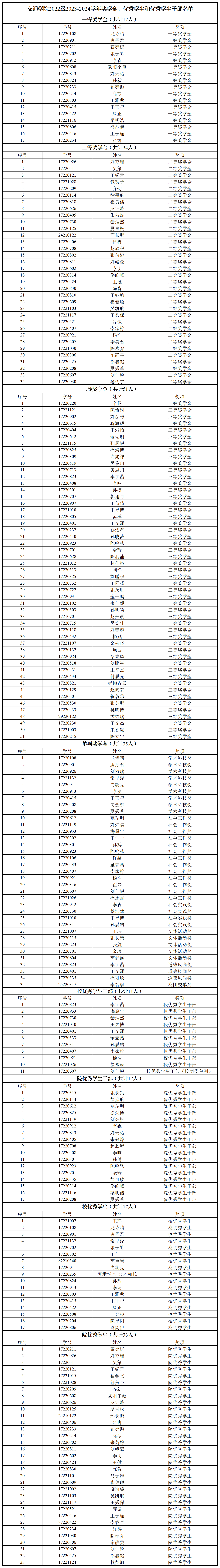 2022级2023-2024学年奖学金名单如下: