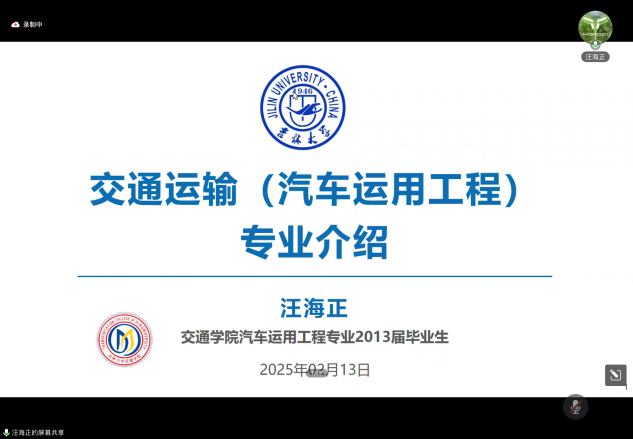 载运工具运用工程系校友汪海正:汽车行业,中国一汽研发总院整车开发高级主任,负责红旗品牌整车产品定义与开发,吉林省省域拔尖人才,长春市汽车及零部件产业研发人才。汪海正校友在报告中详细的介绍了载运工具运用系所学习的内容以及未来能从事的行业,并结合当下汽车产业的蓬勃发展态势,尤其是新能源汽车与智能网联汽车的迅猛崛起,为新生们详细剖析了本专业的就业前景,指出毕业生在汽车制造、销售、维修及智能网联技术应用等多个领域都拥有广阔的发展空间。