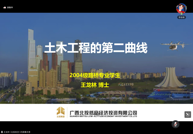 道路与桥梁工程系王龙林:博士,教授级高级工程师,现任广西交投低空经济投资有限公司副总经理,全国青联委员、广西青联常委。主要从事桥梁监测、低空空域监管等交叉学科领域研究。获得过全国创新争先奖,全国青年岗位能手,全国交通建设工匠,广西五四青年奖章、八桂青年拔尖人才、交通部青年科技英才、广西优秀共产党员、省部级科技进步奖7项等荣誉称号。王龙林校友用自己的亲身经历让2024级新生明确该专业未来的从业方向,并告诉学生们,该专业具有很大的发展空间,大家要正确看待网络上的负面评价,王龙林以“土木工程的第二曲线”为主题,从行业现状出发,分析了传统土木工程面临的挑战与机遇,指出绿色建筑、智能建造、BIM技术等是土木工程行业新的发展方向,鼓励新生们在学习注重创新思维培养,掌握前沿技术,为未来投身行业变革做好准备。