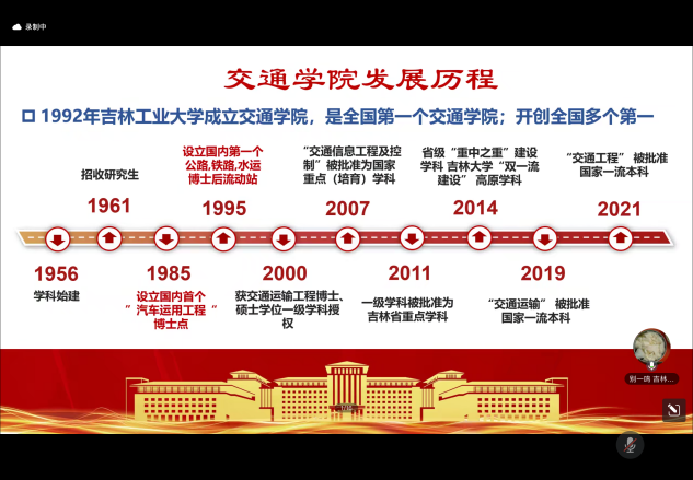 ,2003年毕业于吉大交通工程系交通信息工程及控制专业,入职央企北京易华录信息技术股份有限公司,一直从事智能交通行业。2021年离职参与合伙创业,目前从事低空无人机安全管控领域。闫松申校友以“选择交通工程,天地皆为舞台”为主题,讲述了交通工程专业在城市规划、交通管理、智能交通系统构建等方面的重要作用,通过实际案例展示了交通工程专业人才如何用专业知识改善城市交通状况,提升人们的出行体验,激发了新生们对该专业的学习热情和投身交通事业的使命感。