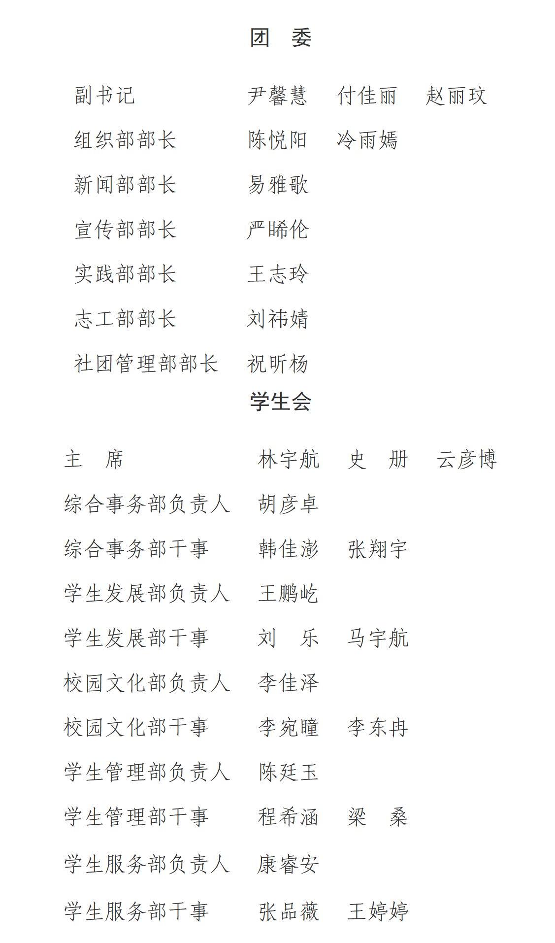 学生组织主要负责人及各部门负责人名单(试用考察期)公示如下: