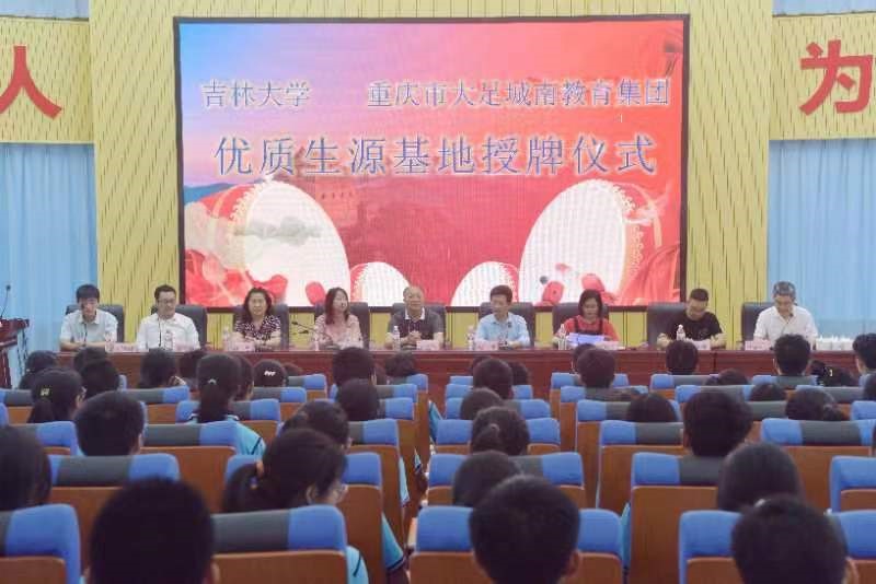 2022年本科招生新闻发布会战胜政策解读及专业推介》两个重要讲话,了解了今年本科招生政策变化情况和各学院各专业的基本情况。在招生会现场我院老师为考生及家长解读吉大招生政策,进行专业介绍,细说吉大人文环境等情况,师生反响强烈,现场效果很好。本次招生宣传得到了各个宣传组织单位的重视。特别是6月27日在重庆大足城南中学进行了“优质生源基地”授牌仪式,我院副院长刘宏飞老师和城南教育集团邓辉董事长参加了此项活动。我院罗清玉教授在授牌仪式前对此学校优秀学生进行了关于av国产