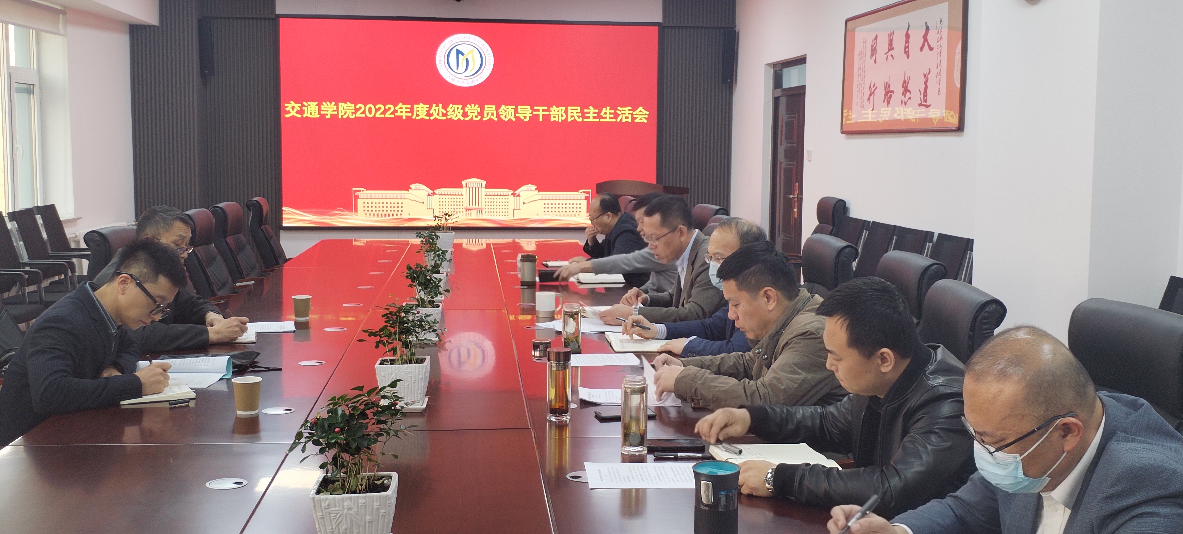 召开2022年度处级党员领导干部民主生活会,学校第十八督导组组长、学院党建工作联络员栾志伟同志,联络员崔小彪同志参加会议,非中共党员刘宏飞副院长列席会议。会议由学院党委书记李善兴主持。